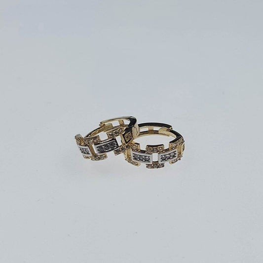 Arracadas Diseño Blanco y Dorado Oro 10 Kilates