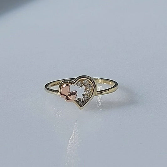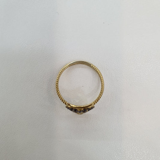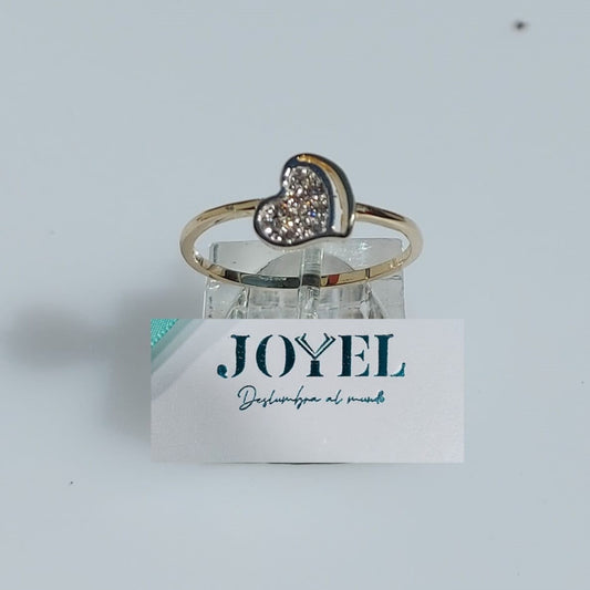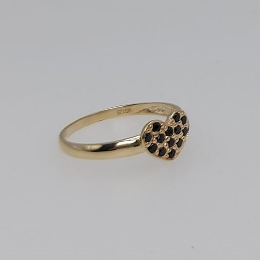 Anillo Corazón Cristales Negros Oro 10 Kilates