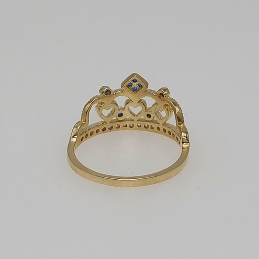 Anillo Corona Cristales Azules Oro 10 Kilates