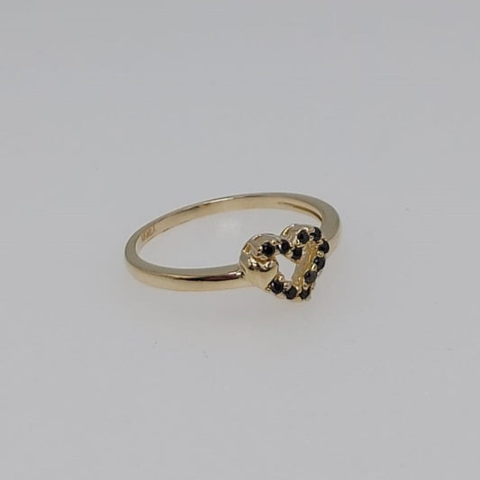 Anillo Corazón Contorno Cristales Negros Oro 10 Kilates