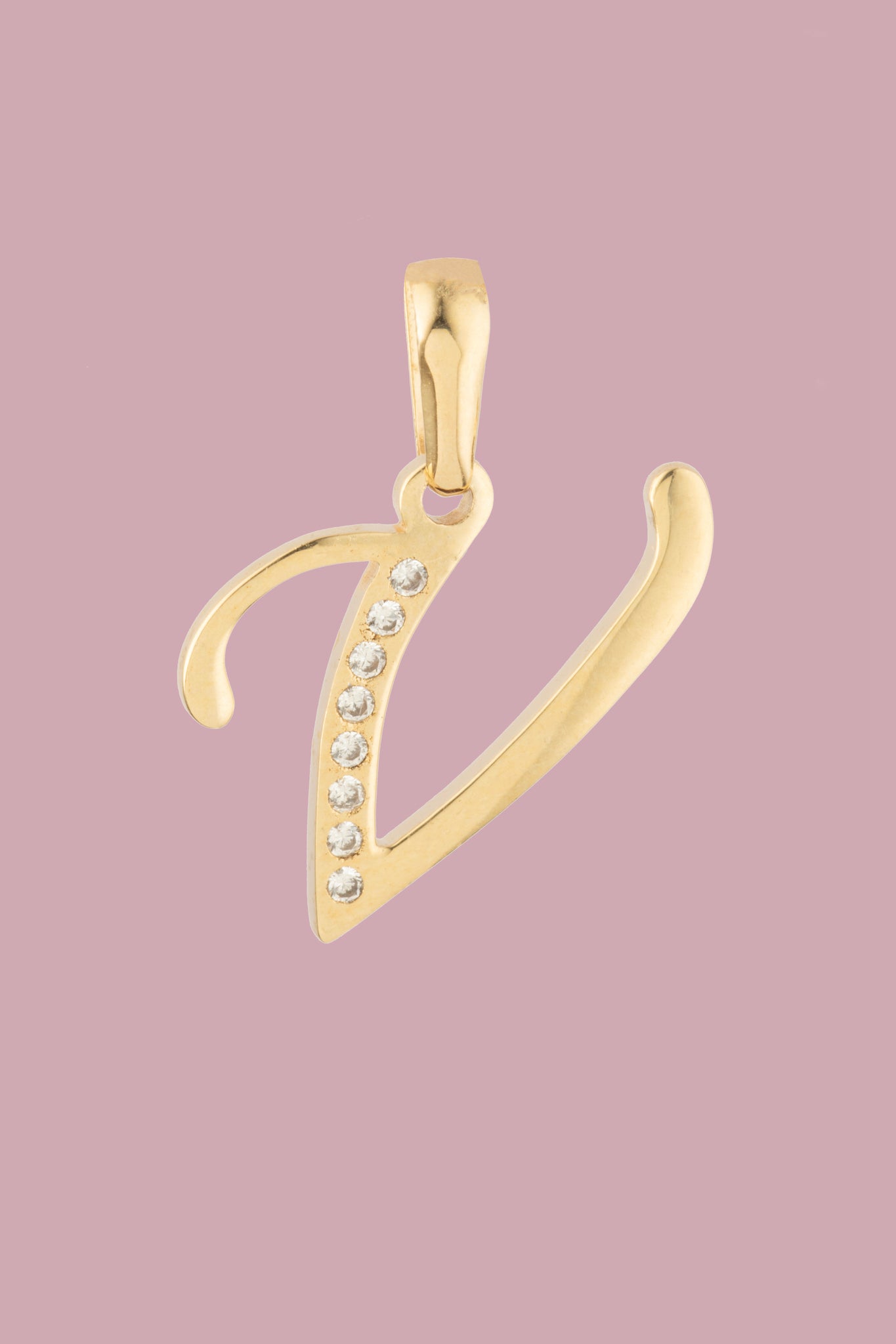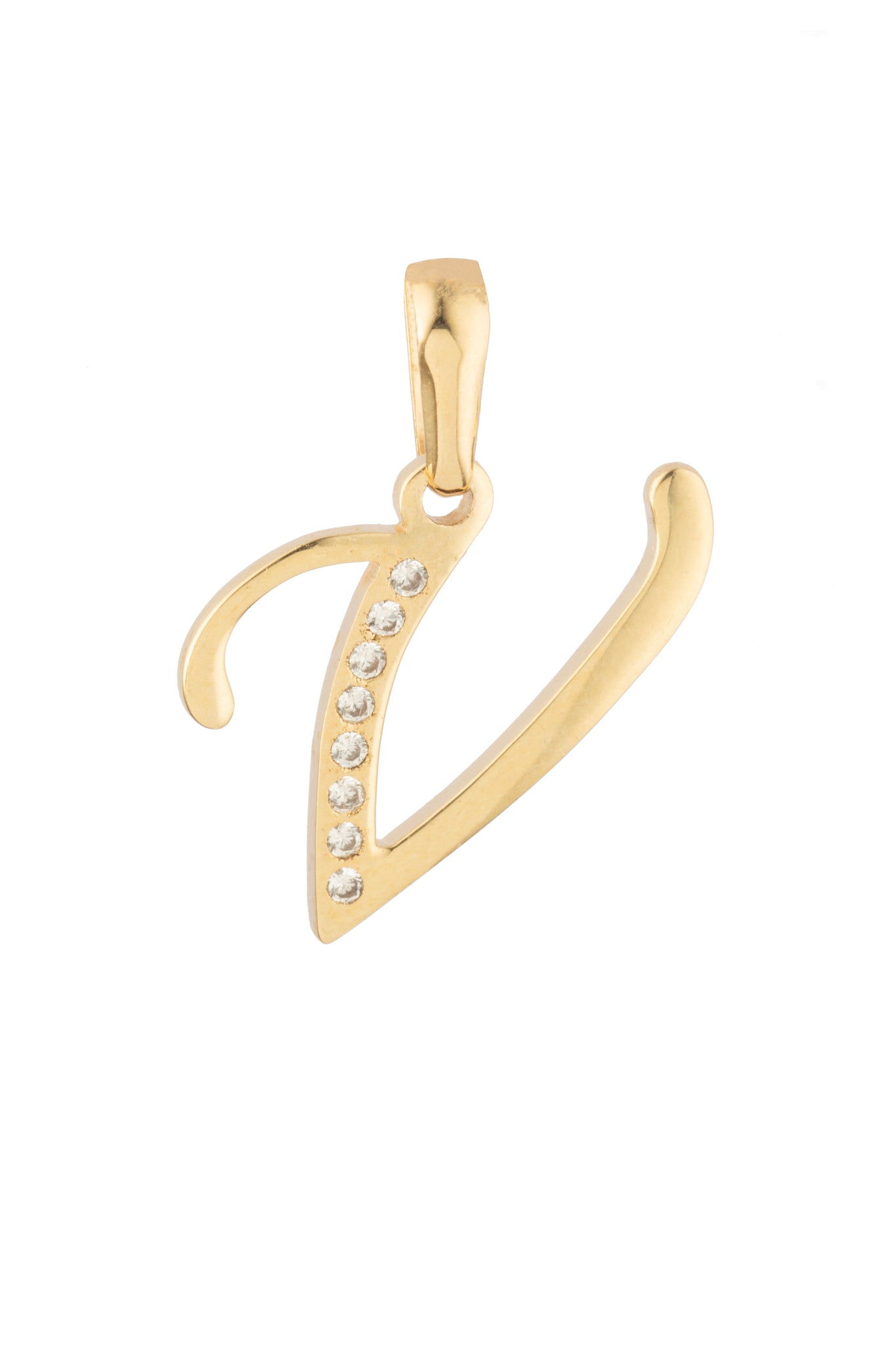 Dije Letra V Oro 10 Kilates con Zirconias
